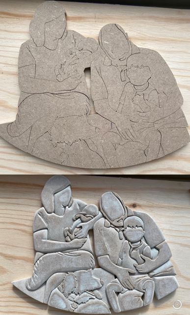 In Abstimmung mit dem/der AuftraggeberIn erstelle ich die Skizze des gewünschten Motivs. Dafür nutze ich ein mir zur Verfügung gestelltes Foto. Die Zeichnung ist ein Abbild des Fotos, nichtsdestotrotz sind alle Details veränderbar. Auch mehrere Personen von unterschiedlichen Fotos können gemeinsam als Holzportrait verewigt werden. Die tatsächliche Herstellung beginnt erst, sobald die Skizze alle glücklich macht.